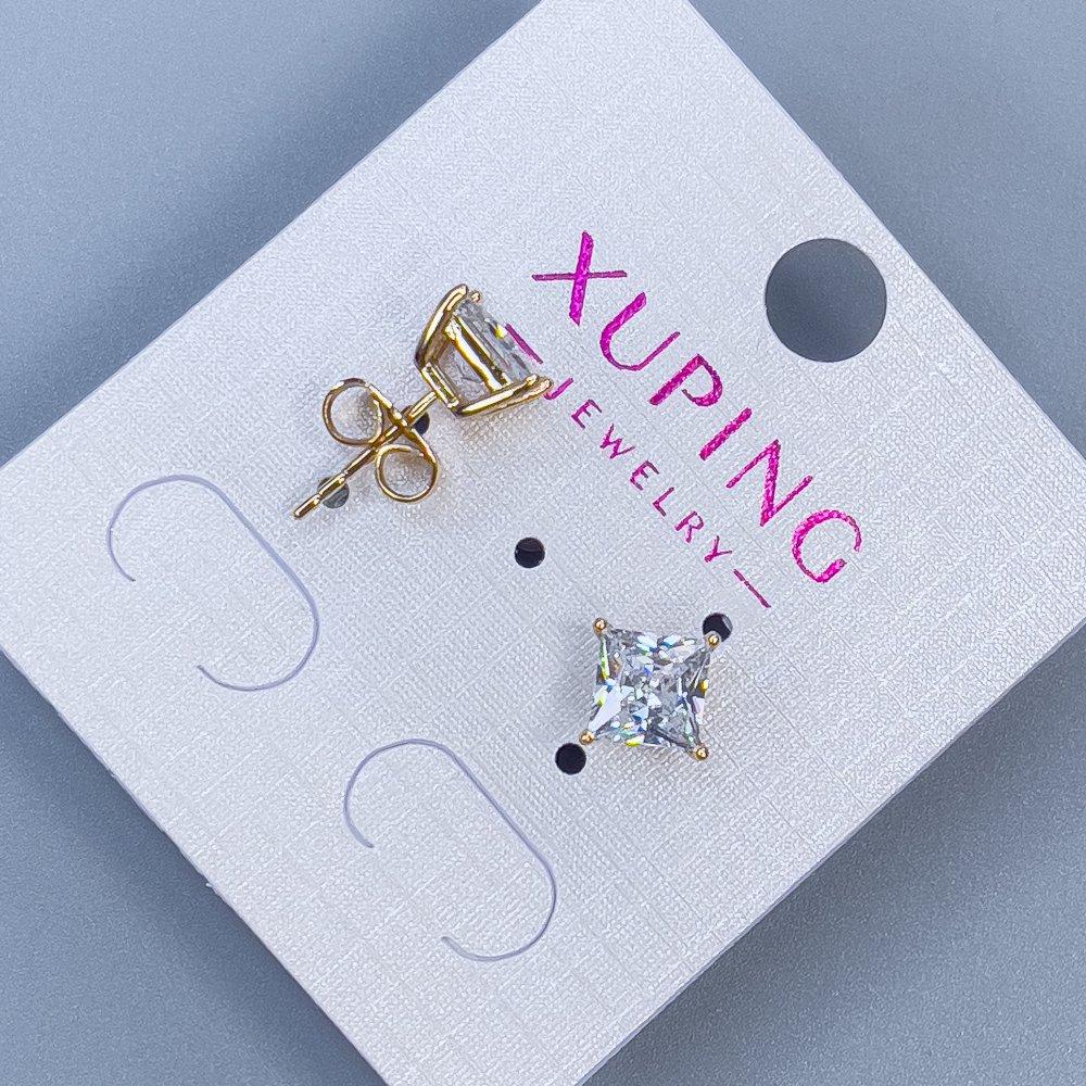 Сережки пусети кульчики Xuping з білим каменем оправа "Квадро" 5мм+- позолота 18к